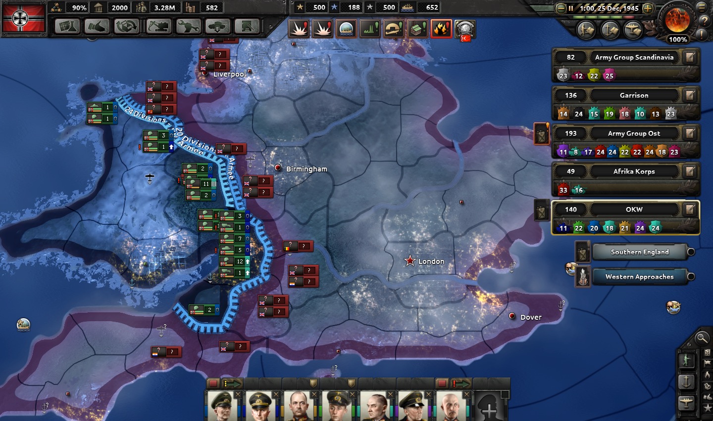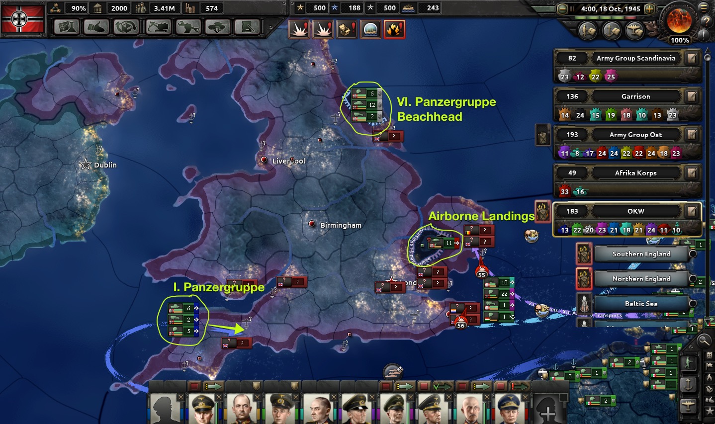 However, all is not lost; 1st Panzer Group is able to make a late arrival in the west and secure a port at Bristol!