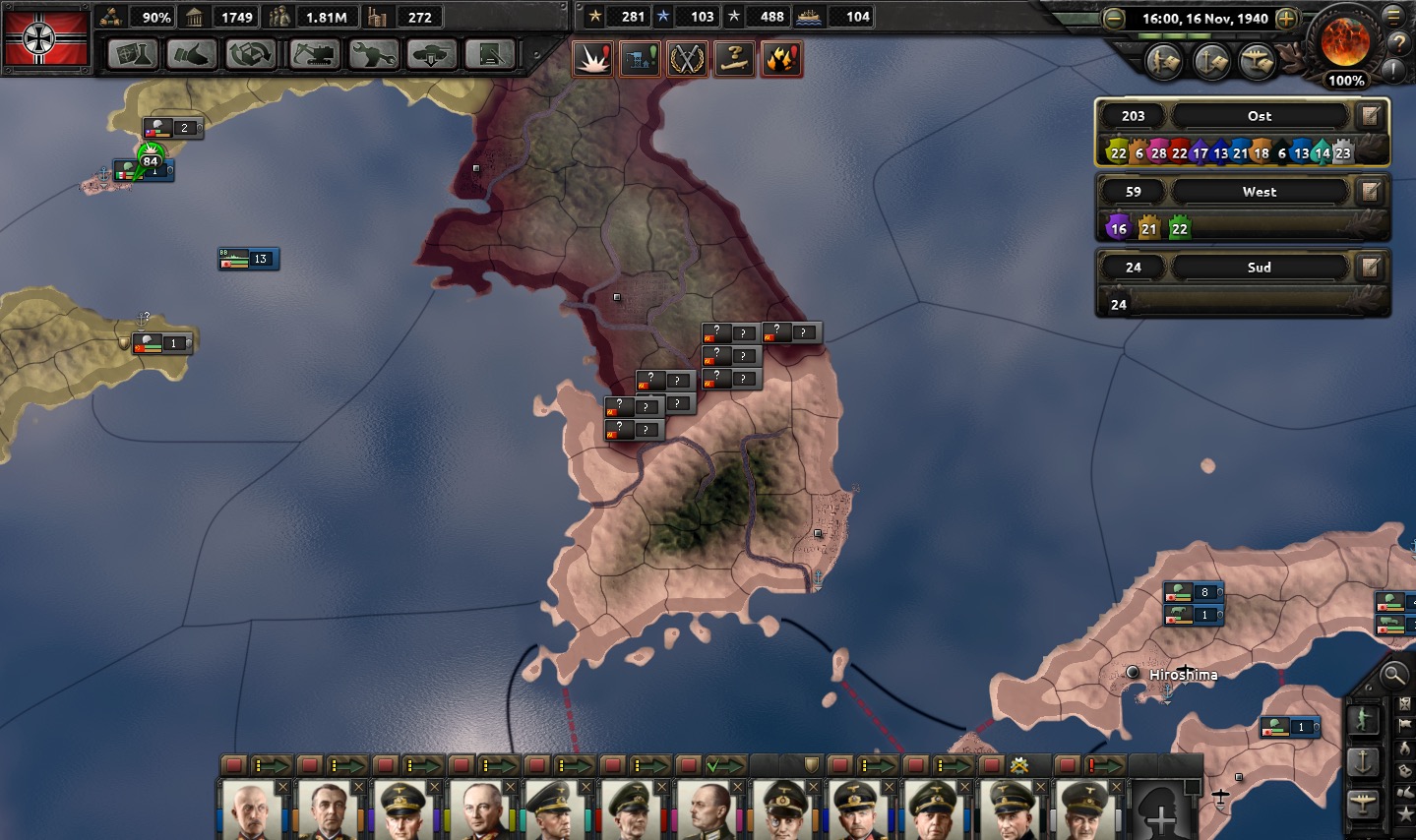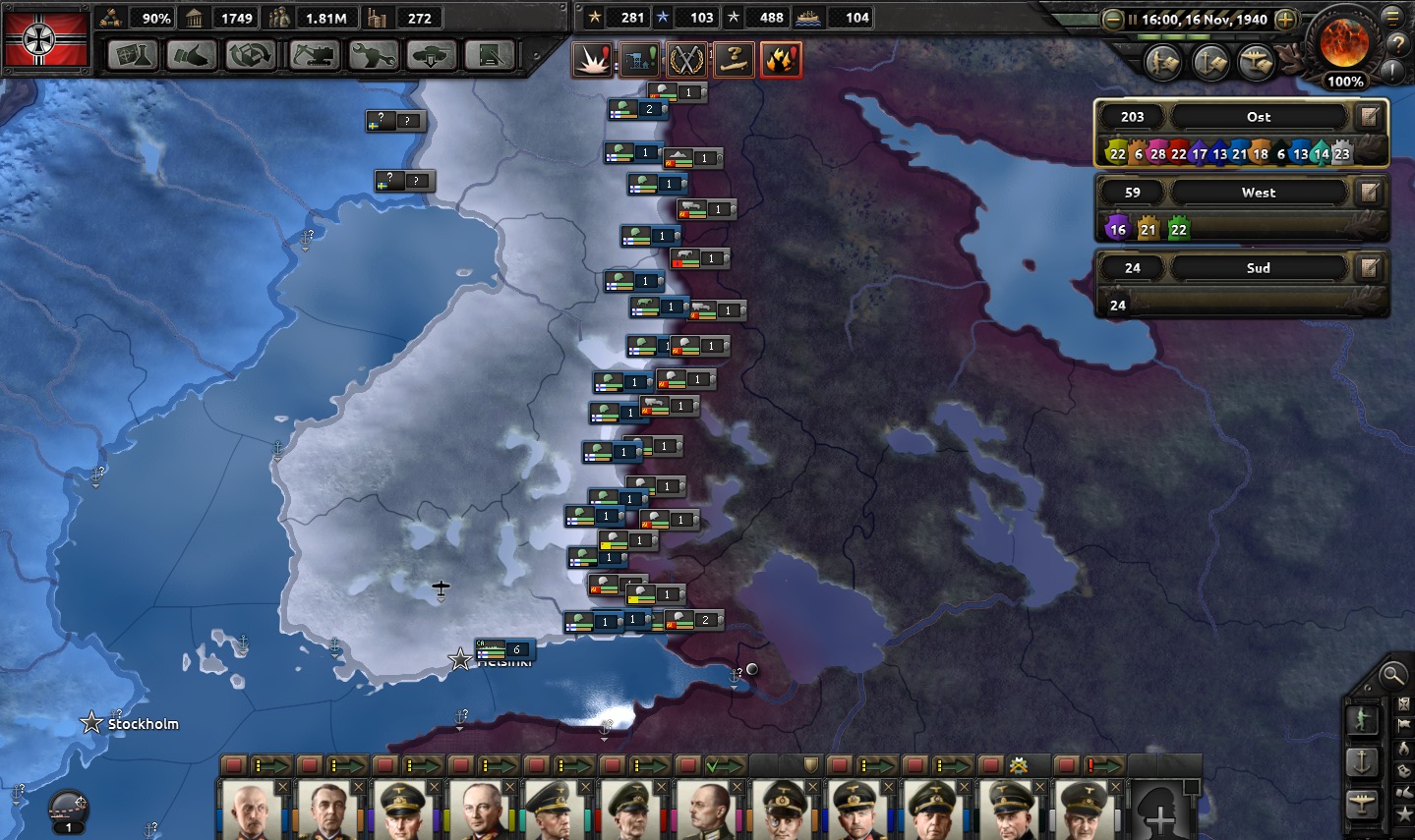 The land forces of the Reich stand at 380 divisions, including expeditionary forces from the various Axis nations directly under its control. 85 of these are predisposed in defensive/garrison duties in western and southern areas and must remain there as we are under constant threat of seaborne invasion from England. The mechanized forces are 20 panzer and 13 motorized divisions split into three panzergruppen, with a fourth currently marshaling. Three new panzer divisions will deploy near the end of November. Matching the Soviets in terms of quantity is hopeless; we will rely heavily on mobile warfare and encirclement to marginalize the Soviet numerical advantage.